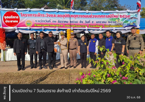 เพื่อเป็นจุดบริการประชาชน และลดอุบัติเหตุทางถนน ลดการสูญเสีย ลดการบาดเจ็บ ในช่วงระหว่างวันที่ 30 ธันวาคม 2568 - วันที่ 5 มกราคม 2569 (จำนวน 7 วัน) "ขับขี่ปลอดภัย ลดความเร็ว ลดอุบัติเหตุ"